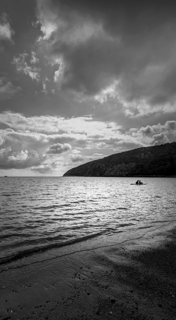 I used acrylics on canvas for this painting inspired by black and white photographs I took at Llanbedrog, Wales recently. I’ve already posted a couple of the photographs so here’s some more along with the painting. Although I’d visited nearby Abersoch before, this was the first time I’d been to Llanbedrog and I hope not the last.