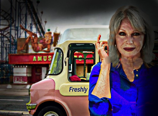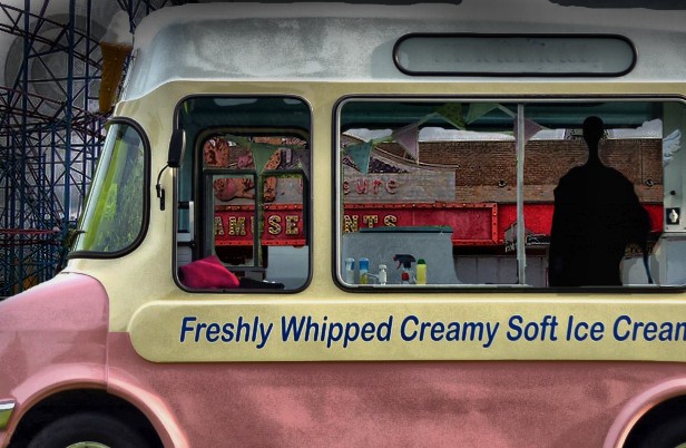 Before Sapphire had a chance to answer, the source of the music appeared on the road at the edge of the beach. Slowly, it trundled towards them; an old Bedford van painted in pastel shades of pink, yellow and blue. It’s shape was curved and fat like an actual melted ice cream. Stencilled on its surface were drawings of delicious ice lollies of every colour in the rainbow. Emblazoned in bright red was the proclamation; Freshly Whipped Creamy Soft Ice Cream. On the back was plastered Slow! Watch For Children! The jangling tune rang out louder now as the van approached.